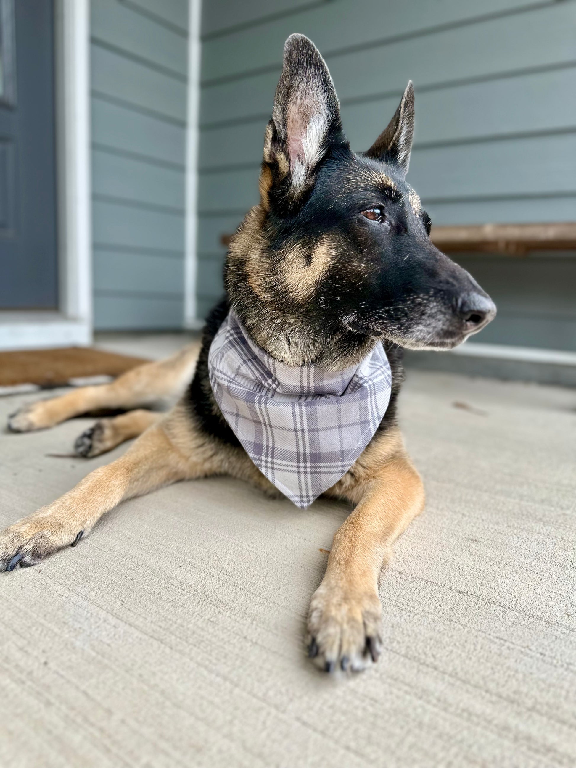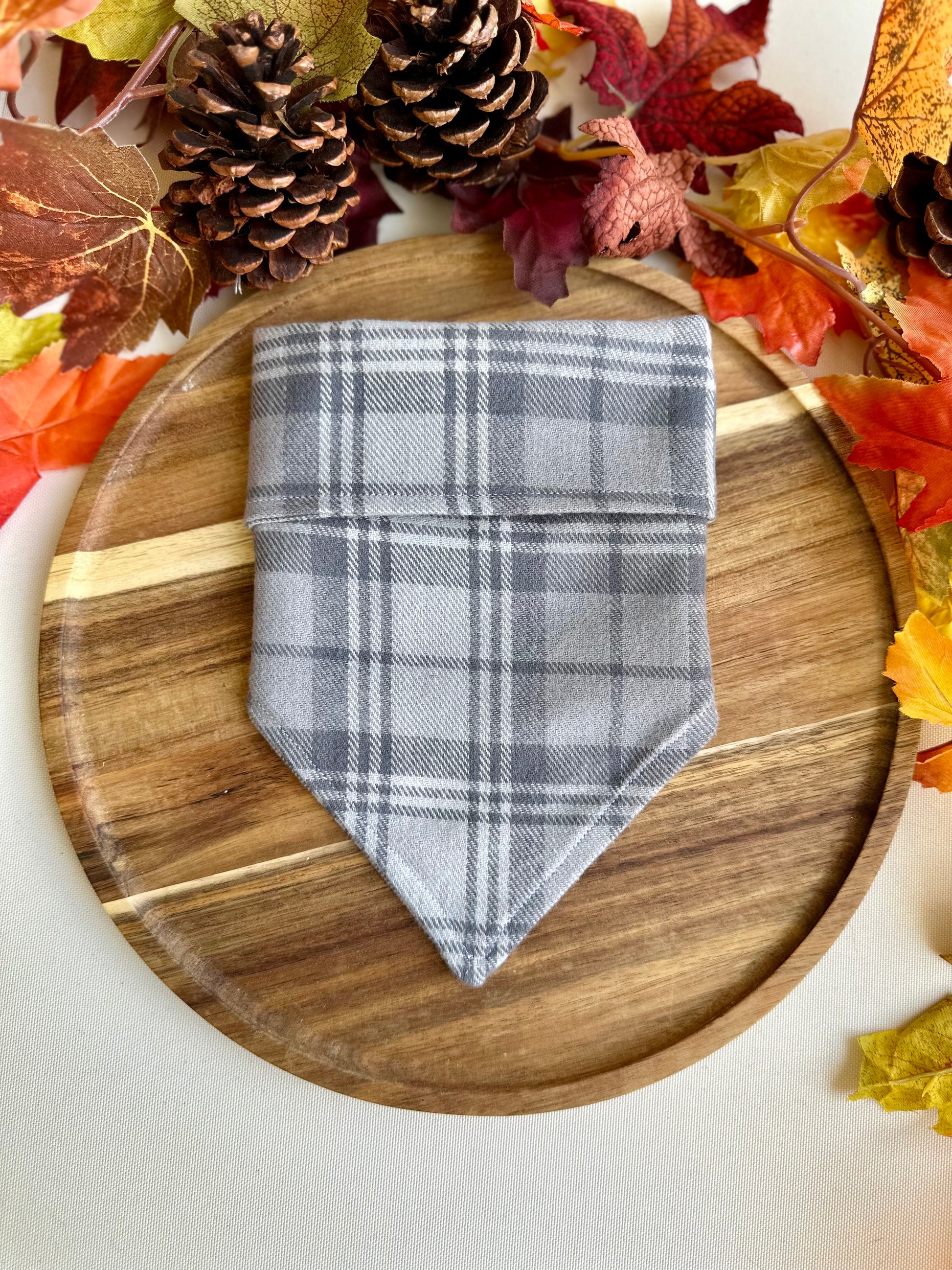 Our Autumn Fog bandana features a gray and white plaid print, making it the perfect accessory for the fall and winter seasons—and everything in between!