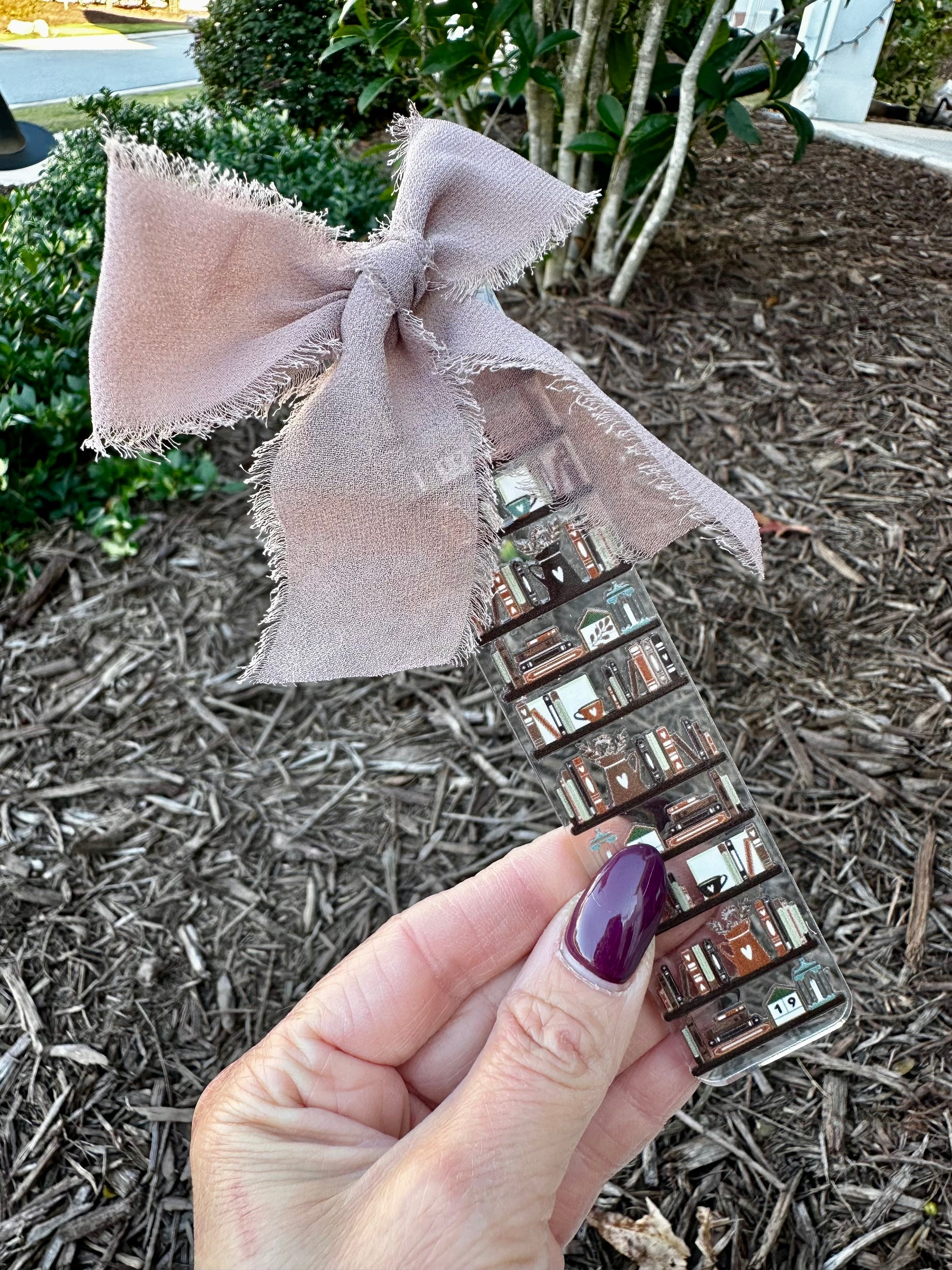 Handmade acrylic bookmark with chiffon ribbon to match!