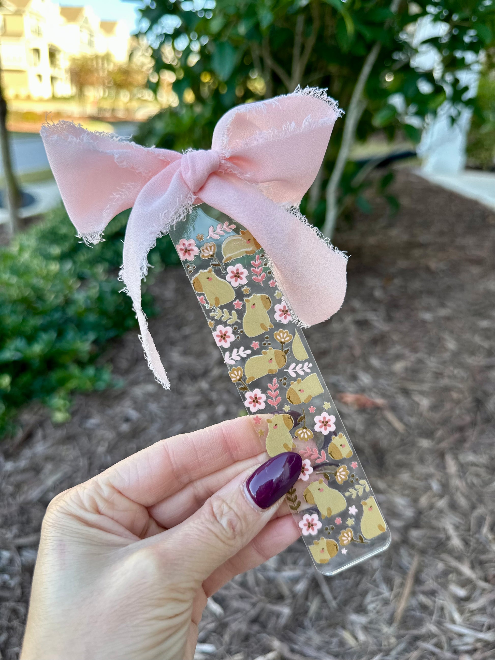 Handmade acrylic bookmark with chiffon ribbon to match!