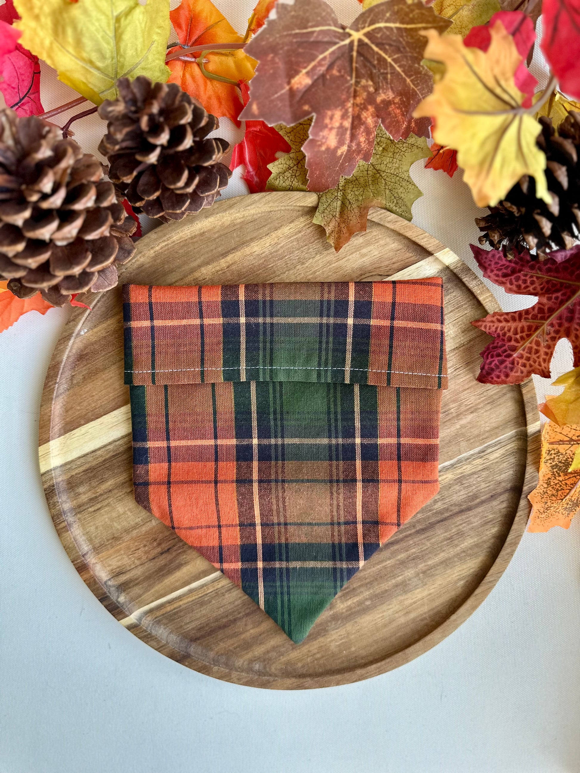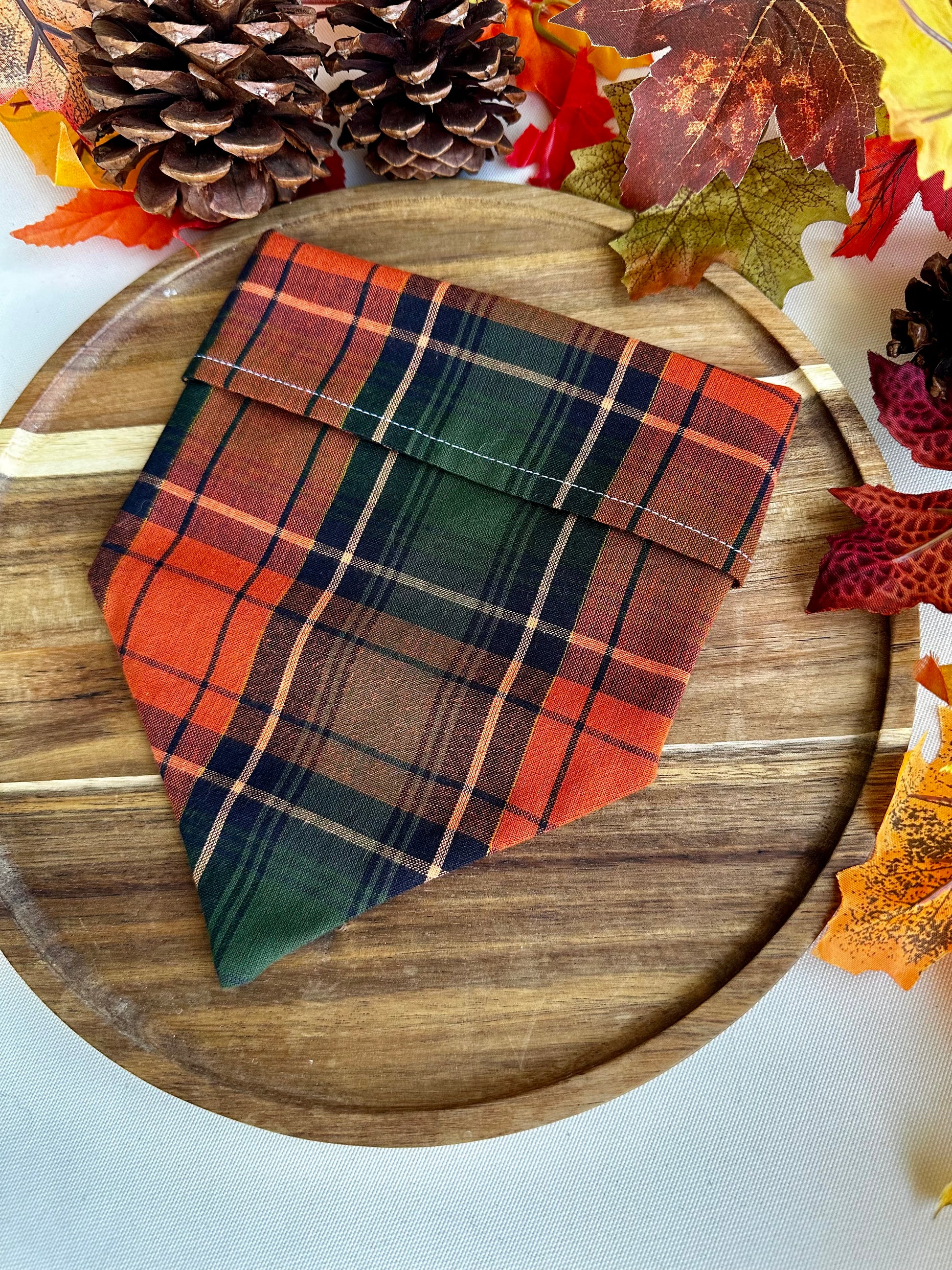 Our Fall-o-ween bandana is a perfect mix between fall and halloween. Cozy fall vibes with a hint of spookiness!