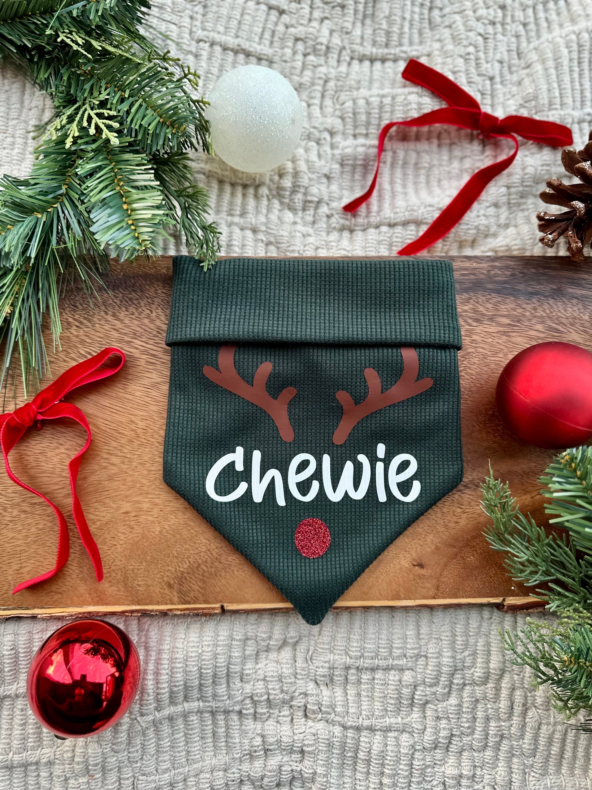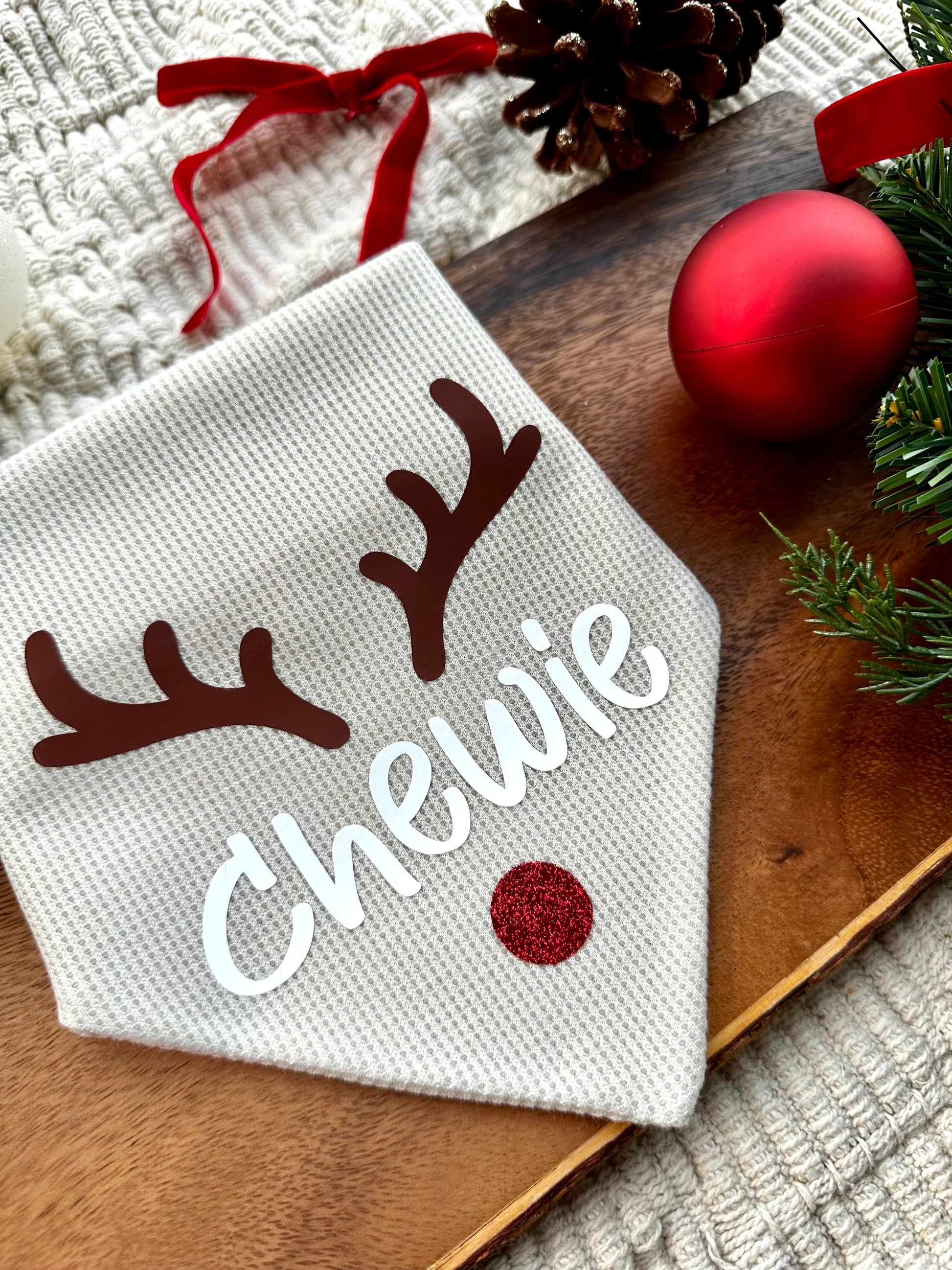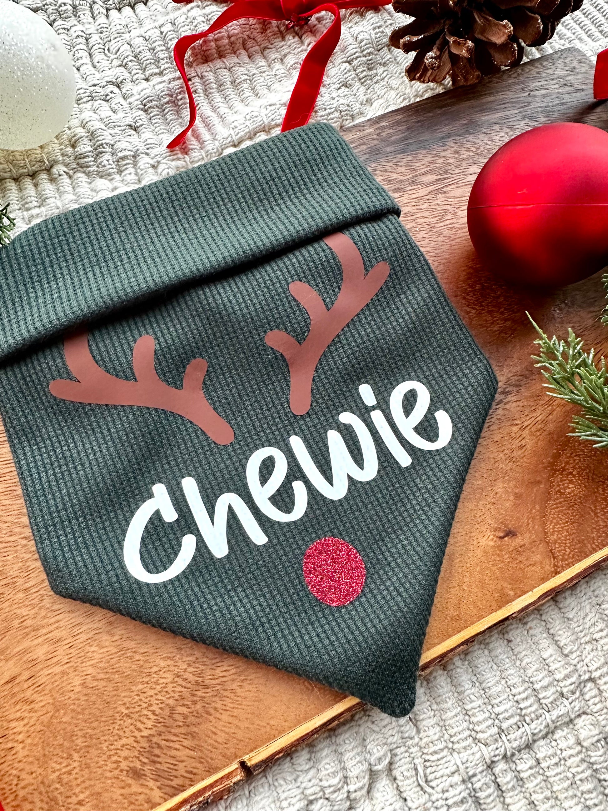 A perfect custom Christmas bandana for your pup! Choose from green or cream knit fabric. Let us know your pup's name at checkout.